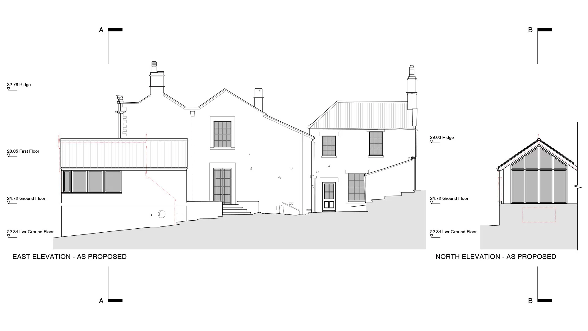 The timber frame conservatory will be carefully extended, preserving the heritage character of the building while introducing modern features to suit contemporary living. The design focuses on maximising natural light, with large glazed elements and strategically placed openings that invite stunning views of the surrounding garden. The extended space will offer an inviting and spacious area for both everyday relaxation and entertaining guests, with an emphasis on comfort and style.
